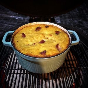 - Paruoškite Kamado BONO kepsninę netiesioginiam kepimui, uždekite anglis, uždėkite dviejų zonų kepimo sistemą su deflektoriumi, nerūdijančio plieno groteles, ant jų uždėkite kepimo akmenį ir palaukite kol temperatūra pakils iki 180 laipsnių.